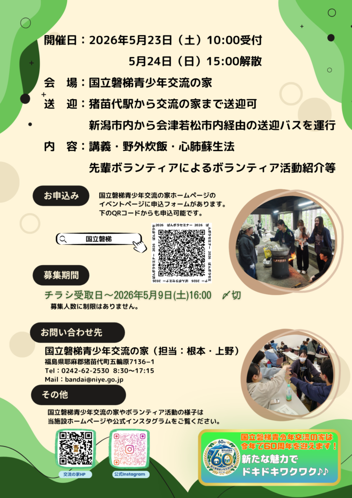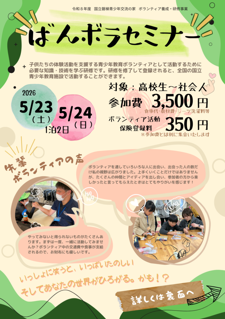5/23~24ばんボラセミナー(ボランティアセミナー)【募集〆切:5月9日】